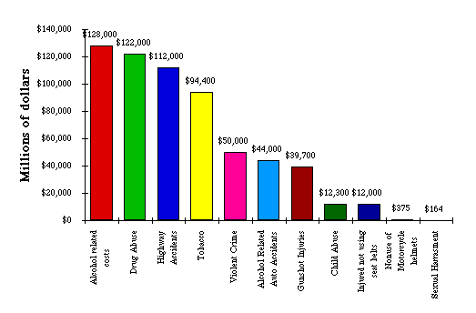 Are you sick of hearing about how "motorcycles and motorcyclists are such a burden to society"? Well, I happened to come across an article from my local (USA) paper that talked about various costs to society for a number of different items. These numbers apparently come from the National Public Services Research Institute. The following graph shows a number of different items. Notice that non-use of Motorcycle Helmets is so small, it's barely a smudge on the graph. All the other items, with the exception of the Sexual Harrasment, are all in the billions of dollars. Makes you wonder, doesn't it?